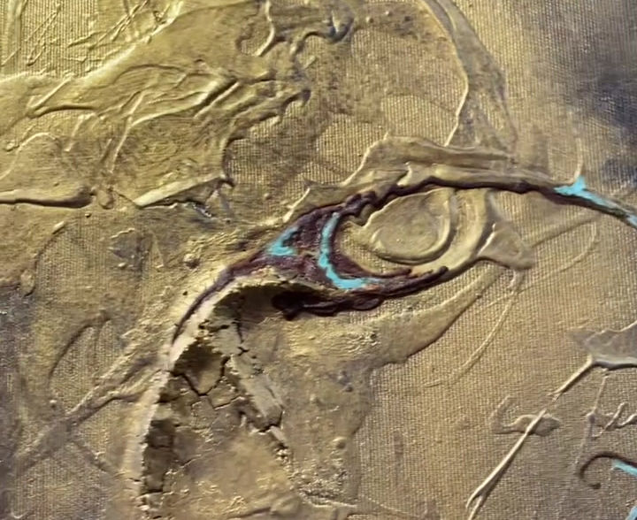 schaumgeküsst auf Papier mit Mixed Media Acryl, Collage, Kohle, 24K Gold. 130x105 im Eisenrahmen. 140 x 90 cm.